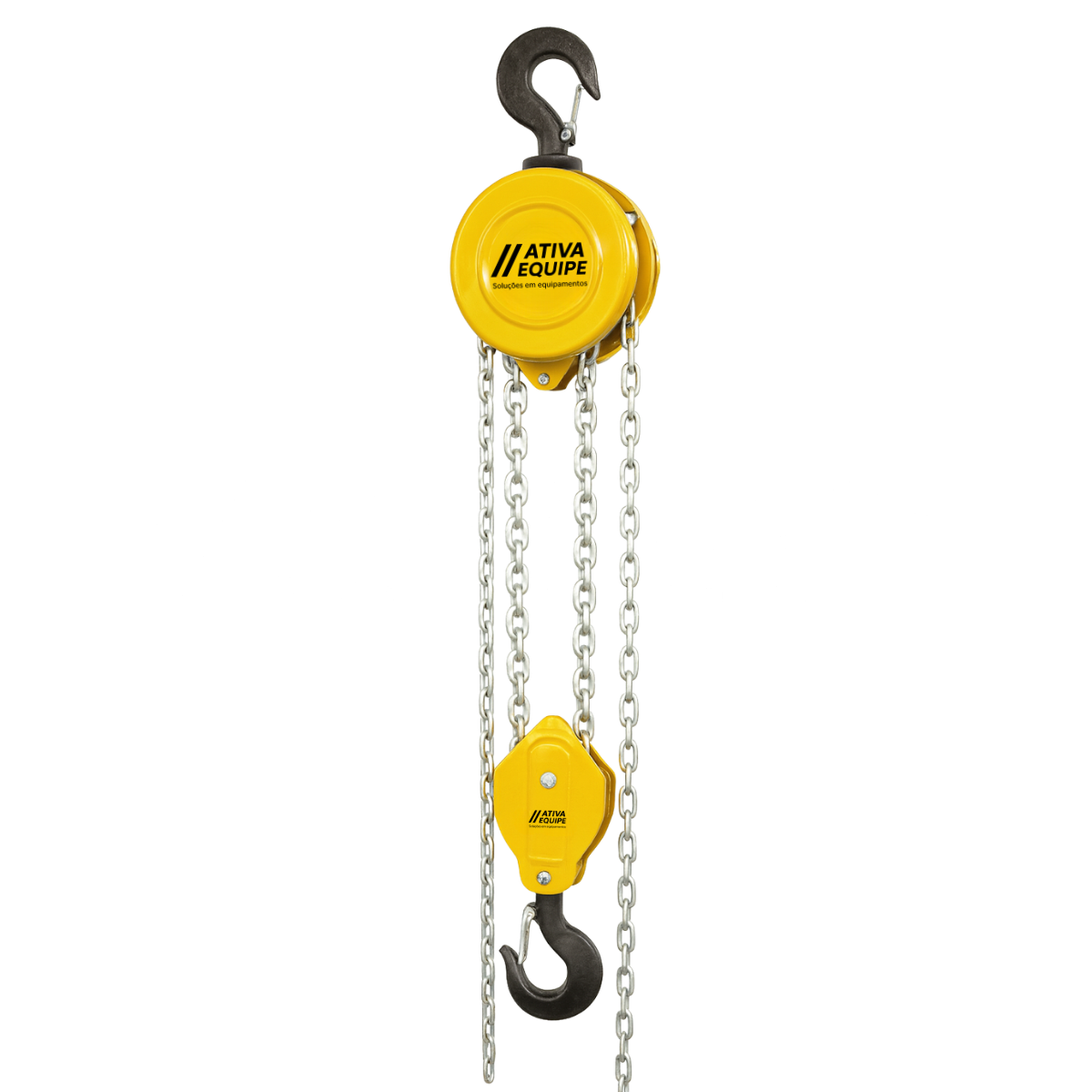 Equipamento destinado à elevação, descida e posicionamento vertical de cargas, operado manualmente por corrente. Utilizado em ambientes industriais, oficinas, construção civil e manutenção, permite movimentação segura de cargas suspensas, desde que respeitada sua capacidade nominal.